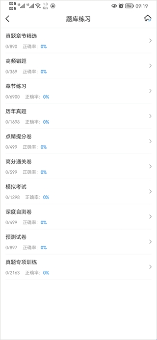 四、用户还可以通过题库练习进行学习,里面包含了章节精选、高频错题、模拟考试等各种题型,能够更好的帮助你拿高分