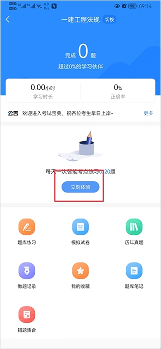 一、打开一建考试宝典app,在首页中选择你要学习的课程,如一建工程法规