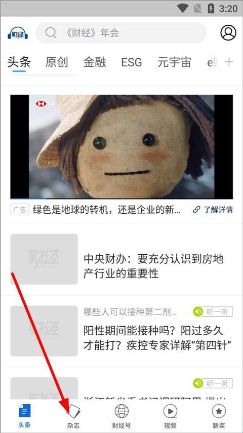 1、打开财经杂志app,登录账号进入首页,点击杂志进入杂志页面;