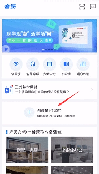 2、连接锐捷路由器Wi-Fi,然后打开app,首页点击创建第1个项目