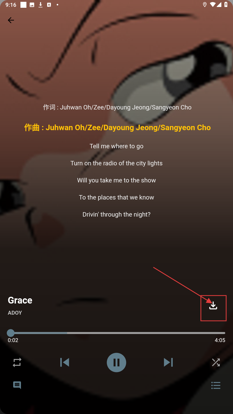 3、进入歌曲播放界面,点击右下角下载图标进行歌曲下载。