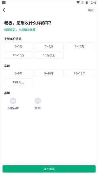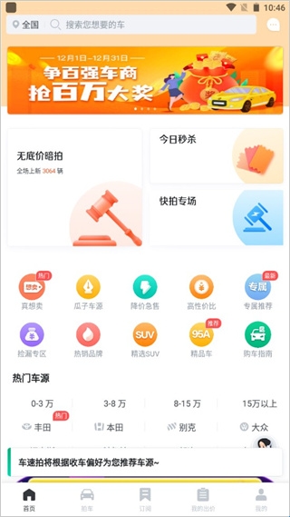 3、选完以后就进入软件首页,在首页可以搜索想买的车或者拍卖车;