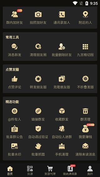 2、在主界面可以看到非常多的功能,比如转发朋友圈、群内加好友等等;