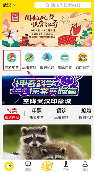 1、打开亲子年票app,点击首页【吉象年票】;