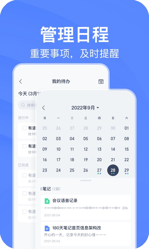 有道云笔记是一款帮助用户们进行记录笔记的软件。在软件上具有非常多的强大的功能具有多种的记录的功能,用户们可以将自己学习重要的笔记或者是在工作的时候一些数据和笔记都可以进行在软件上记录,用户们可以进行随时随地的记录,避免自己忘记提高自己工作的效率。