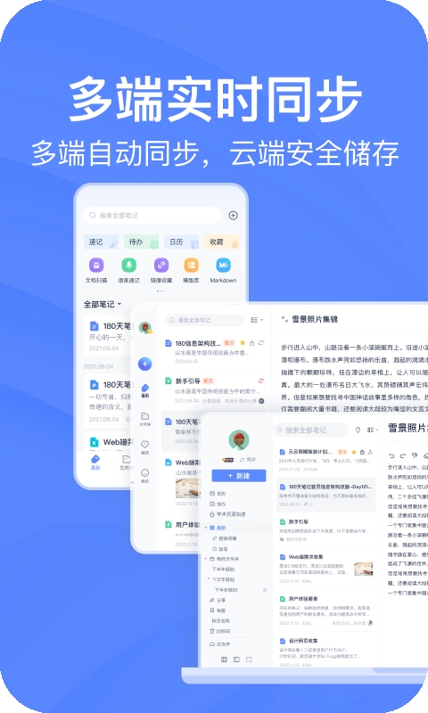 Markdown、扫描、语音、手写等多种记录方式满足不同场景的记录需求;