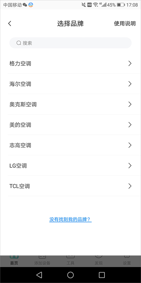 应用会自动搜索并匹配与手机在同一WIFI或红外线可观测范围内的空调设备;
