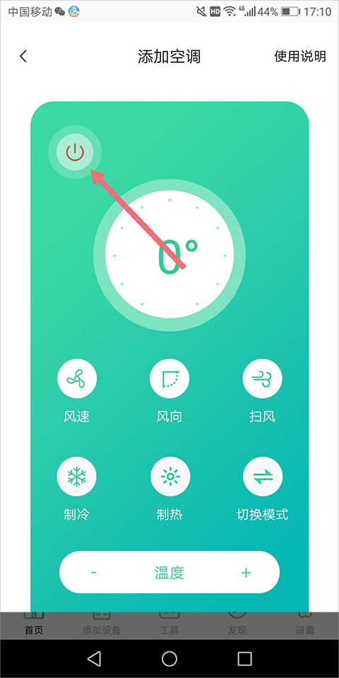 选择品牌后,软件会自动进入该品牌空调的遥控页面;