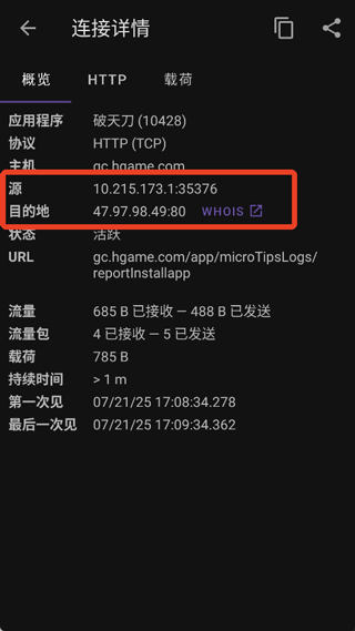 PCAPdroid支持对捕获的网络流量进行深入分析,用户可以查看数据包的详细信息,如IP地址、端口号、协议类型、请求和响应内容等。此外,它还支持对流量进行解密(需要配置SSLKEYLOGFILE)。