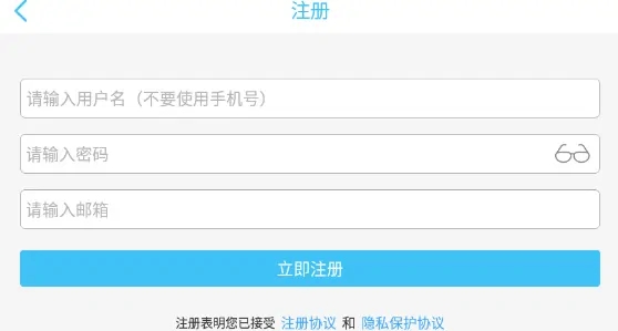 2. 轻点【我的】-【登录/注册】,于注册页面录入用户名、密码及邮箱等相关信息。