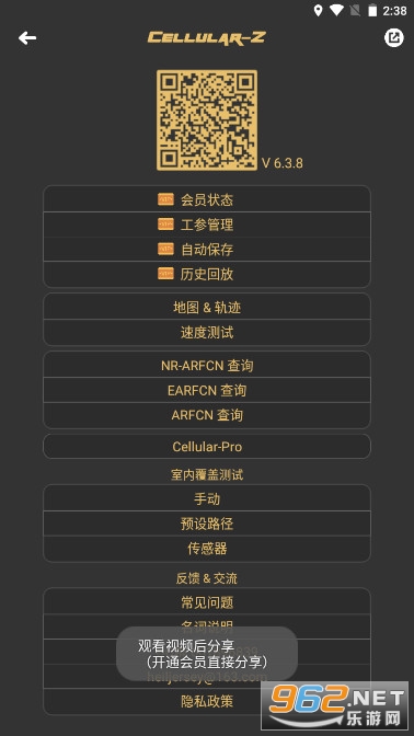 Cellular - Z,对无线的了解更多一点! Cellular - Z是一款用于查看电信小区、信号质量、WIFI网络信息及信道的软件 ,其主要功能如下: 一、双卡手机网络信息查看(包含SIM卡信息、服务小区信息、服务小区信号质量,部分手机还能获取邻小区信息)。 二、WIFI信息(已连接的信息、附近WIFI列表以及WIFI信道2.5GHz和5GHz情况)。 三、当前位置信息。 四、设备信息(涵盖电池信息、硬件信息、系统信息)。 五、网速测试(SpeedTest)。 六、测试轨迹与室内覆盖情况查看。