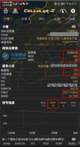 下图为软件的截图,图中的RSRP表示基站的信号强度,-92意味着信号处于一般水平,基本能够维持通话与上网。