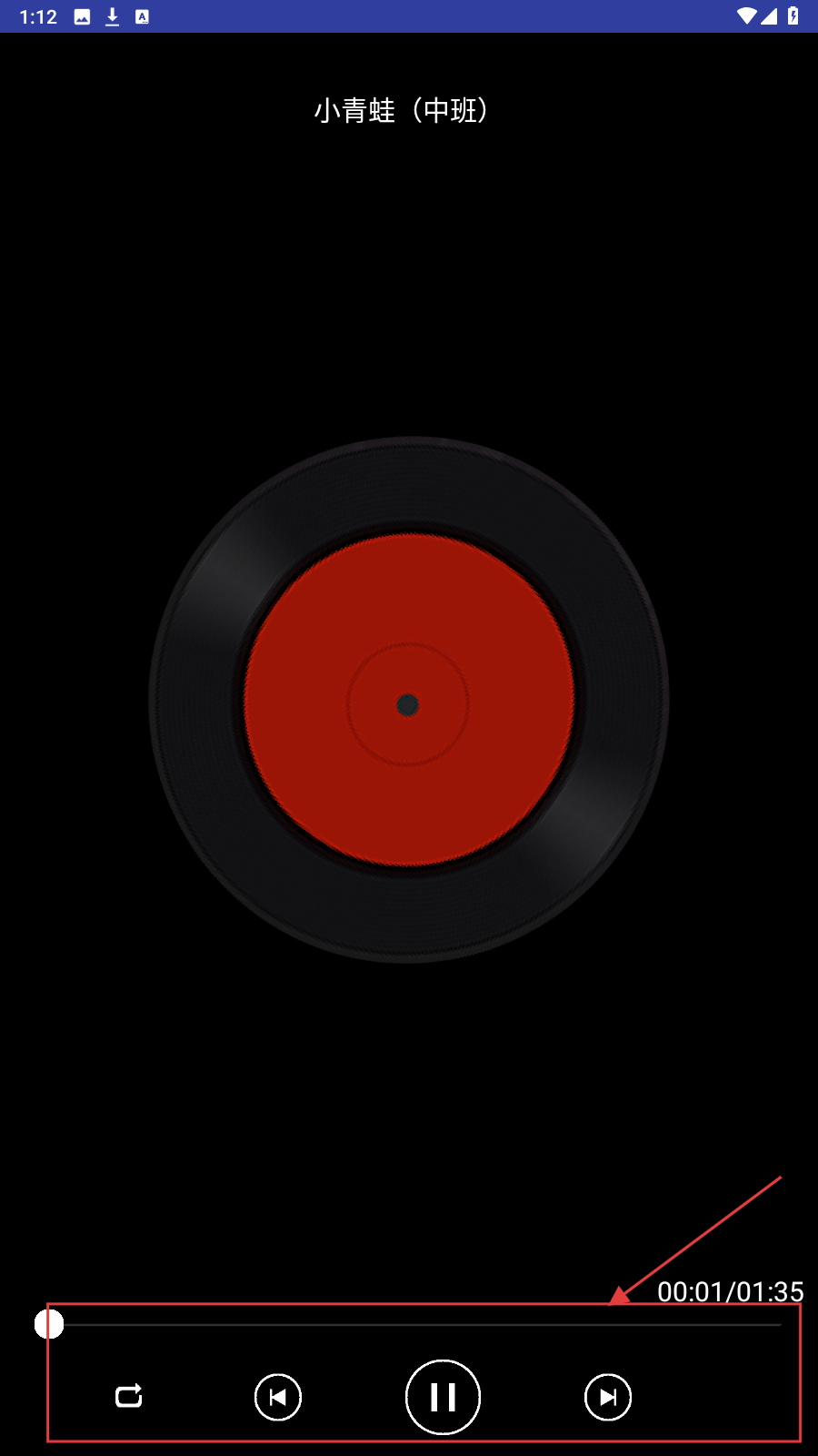 3、在儿歌播放页面,可通过进度条调整播放进度,还能进行暂停、切换歌曲等操作。