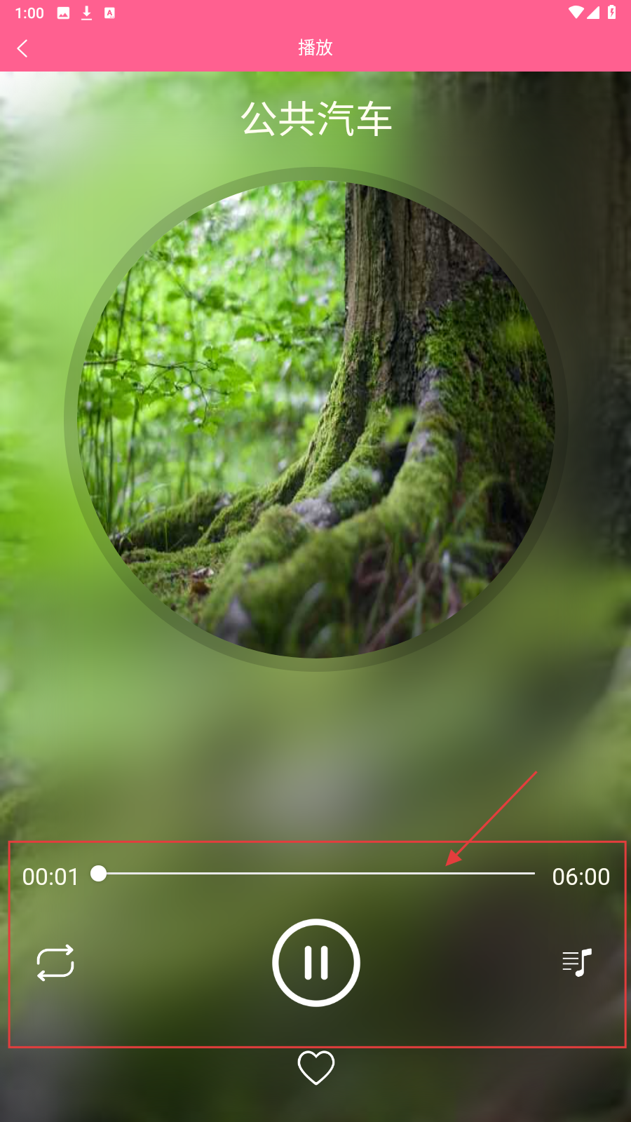 1、打开心兔音客应用后,在首页选择冥想分类下的音频,如【公共汽车】,点击进入播放页面。