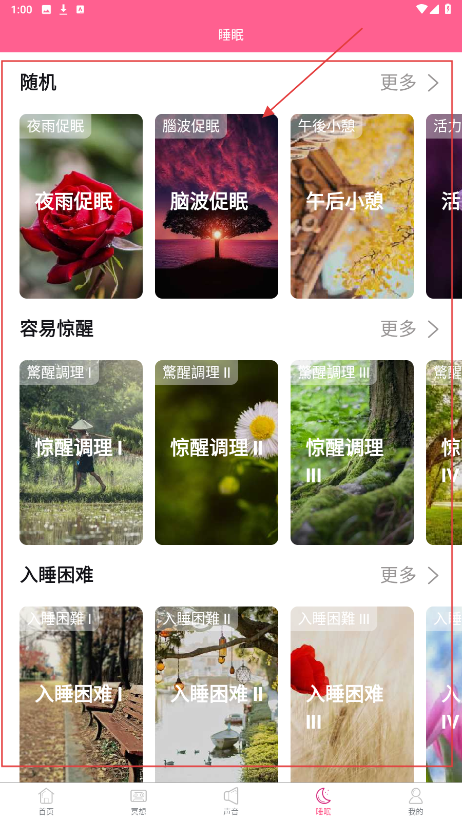 3、切换到睡眠分类,可选择不同的睡眠音频,如【夜雨促眠】,点击进入播放页面。