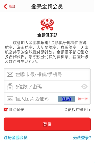 2、有账号就输入账号,没有账号的点击注册“金鹏会员”