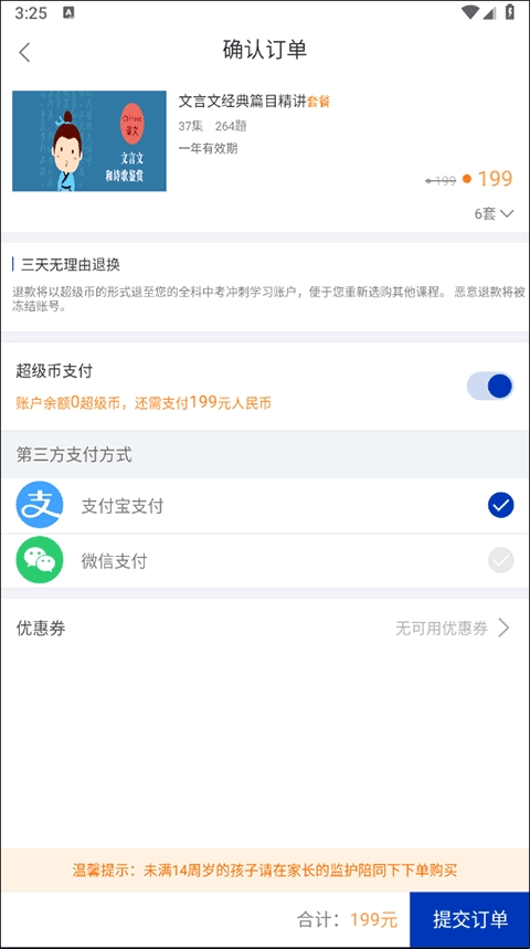 4、最后在这里选择好支付方式后找到并点击“提交订单”选项。
