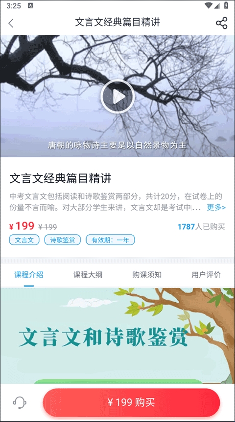 3、现在在点击一个具体课程中后会出现需要购买的需要,可以点击购买进入支付界面;