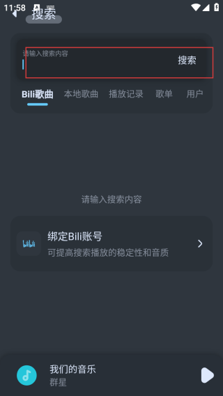 2、进入搜索框输入自己想听的歌。