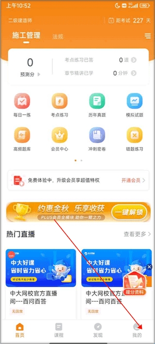 1、下载安装好二级建造师准题库,进入软件主页面,进入我的页面。