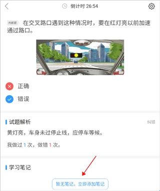 1、打开软件,答题之后,下方会显示一个学习笔记区域,点击“立即添加笔记”