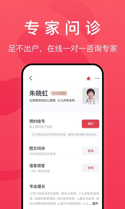 足不出户在线一对一咨询专家,语音、快速、图文多方式,解决母婴和家庭健康问题。