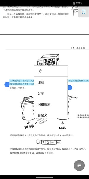 2、进入阅读界面后,可通过双指缩放搭配长按来选中指定的文字