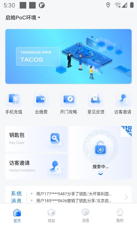 特斯联是一款非常智能的门禁软件。在软件上都是非常智能的功能,而且软件上的功能也是非常的丰富,用户们可以通过手机上的软件与门禁进行连接,就可以直接的使用手机进行解锁门禁,十分的方便。而且还可以将功能尽心传递给他人,一起共享,就可以十分方便的进出。