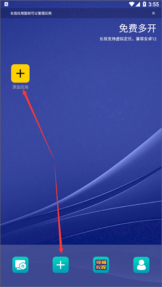 打开虚拟双开王app,点击“添加应用”或者下面的“+”按钮,就可以选择你想要多开的软件了。