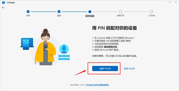 Windows将生成一个二维码,使用“你的手机助手”应用扫描这个二维码。