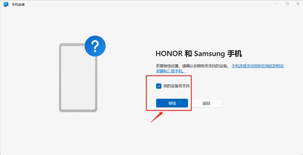 确认你的手机是HONOR或Samsung等支持的品牌,并勾选相应选项。