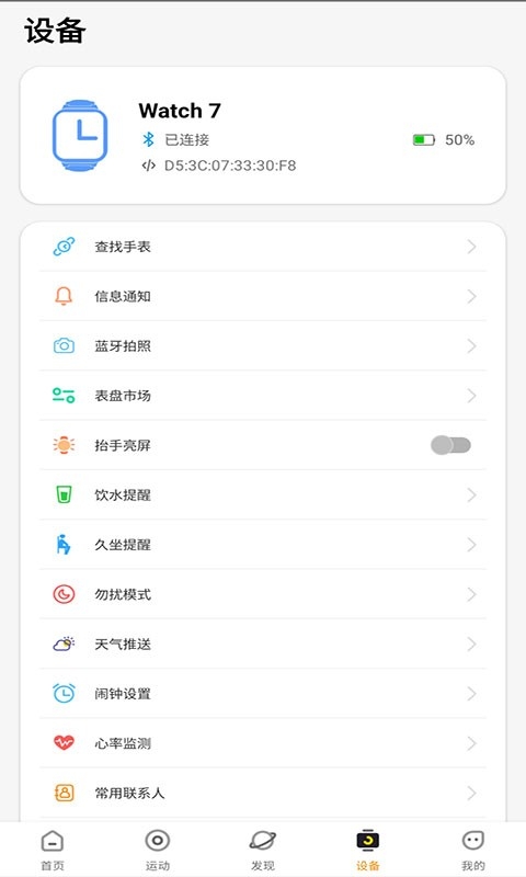 3、点击设备,用户可以自定义添加设备,还可以管理自己的硬件穿戴设备,实现健康提醒、闹钟推送、天气同步、电话信息同步等拓展功能。