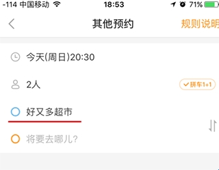 1、打开滴答滴顺风车app最新版,非上下班选择其他预约;