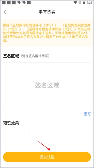 4、在签名区域填写自己的名字,写完后点击“提交认证”,等待后台审核,审核通过后就认证成功了。