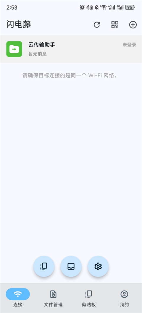 如果设备没有自动连接,可以在闪电藤App的主页右上角找到扫码功能。通过扫描另一台设备上的二维码,即可快速建立连接。