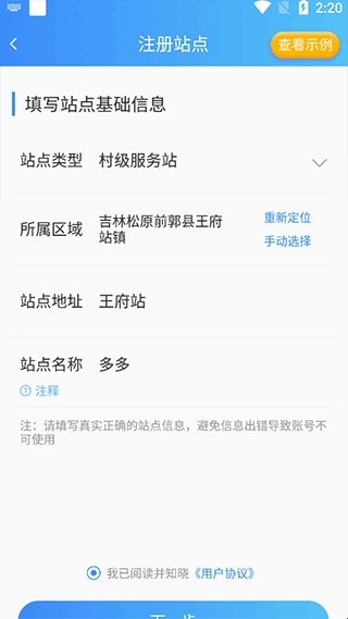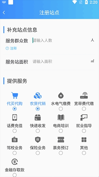 1、打开智慧乡村服务应用,在这里找到并点击“站点注册”按键;