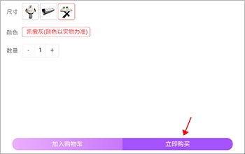 2、选择规格再次点击“立即购买”即可付款
