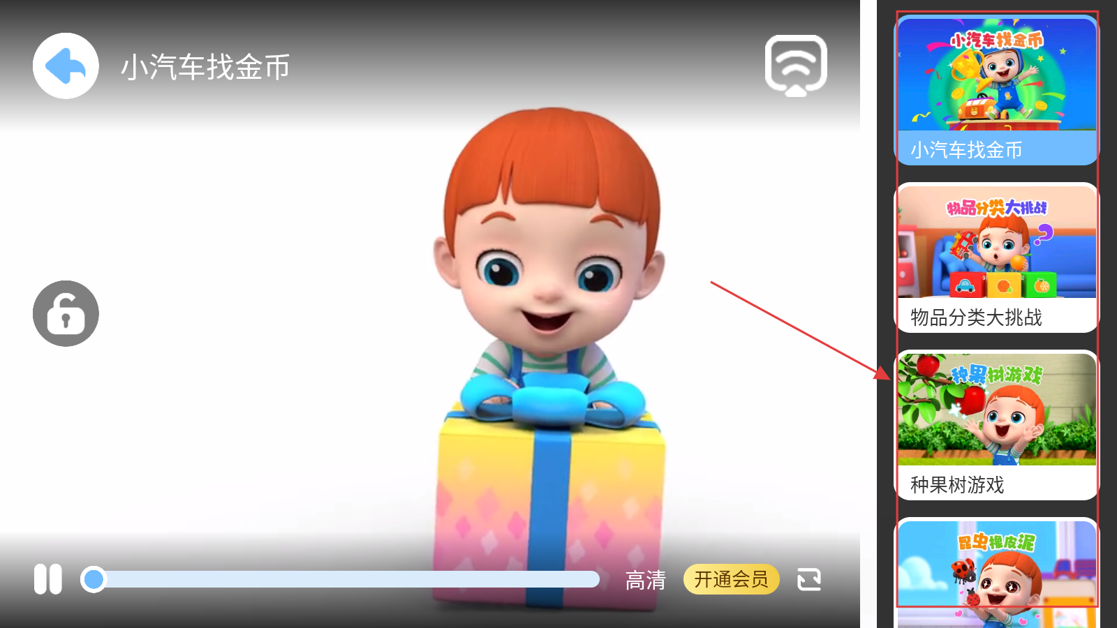 3、在剧集列表点选单集(如《小汽车找金币》),进入播放页观看。