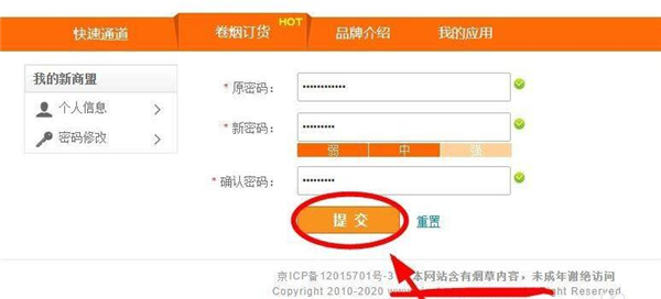 新商盟订烟订货登录平台如何更改密码