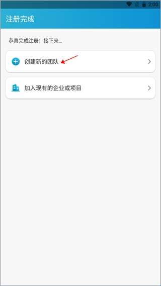 1、注册成功并登录账号就可以进入软件,会发现有两个模块,需要新的团队就可以点击“创建新的团队”。