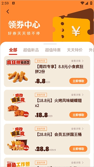 1、用户可以在app中的优惠界面下领取各种官方优惠券