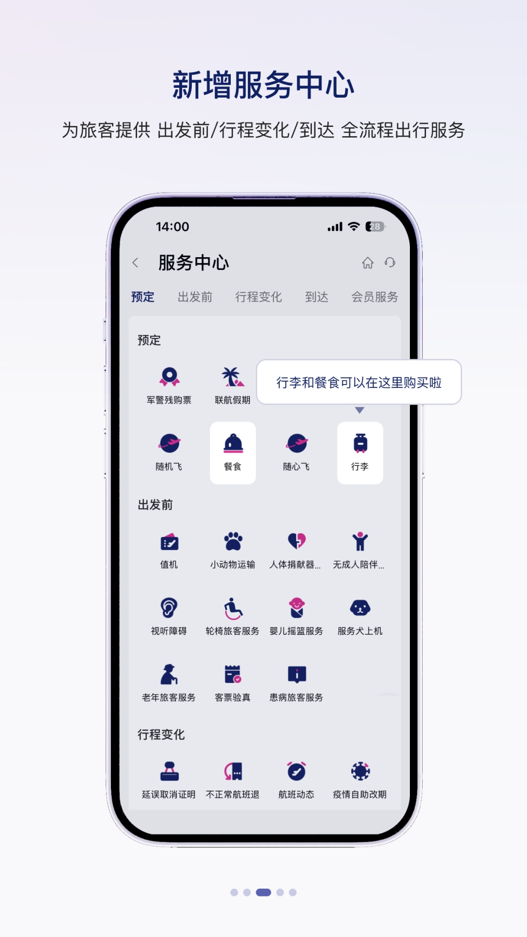 增值服务——可在机票预订页面、增值服务购买页面、订单管理页面三个通道实现您行程中行李、餐食等附加服务的选购。