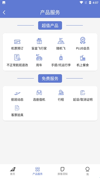 1、在本站下载该软件打开,进入首页,你可以查询航班班次,查看航线,以及拥有航班动态、选座值机、随机非、机上餐食等等功能可以使用