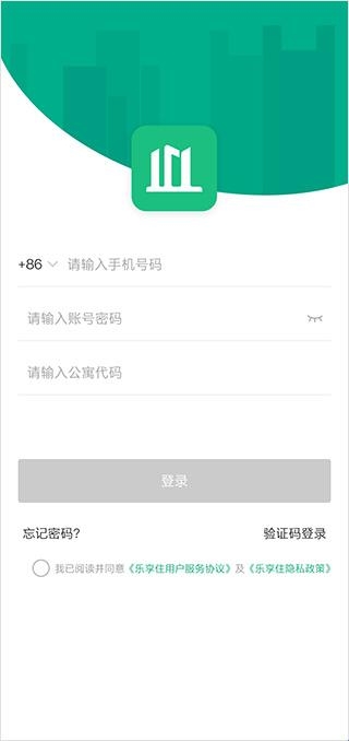 1、首先打开乐享住公寓输入自己的手机号码、密码、公寓代码即可登录;