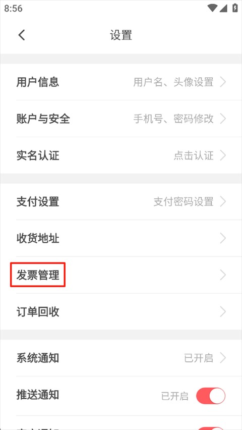 在设置界面中,找到并点击“发票管理”选项,这是管理发票的专属区域。