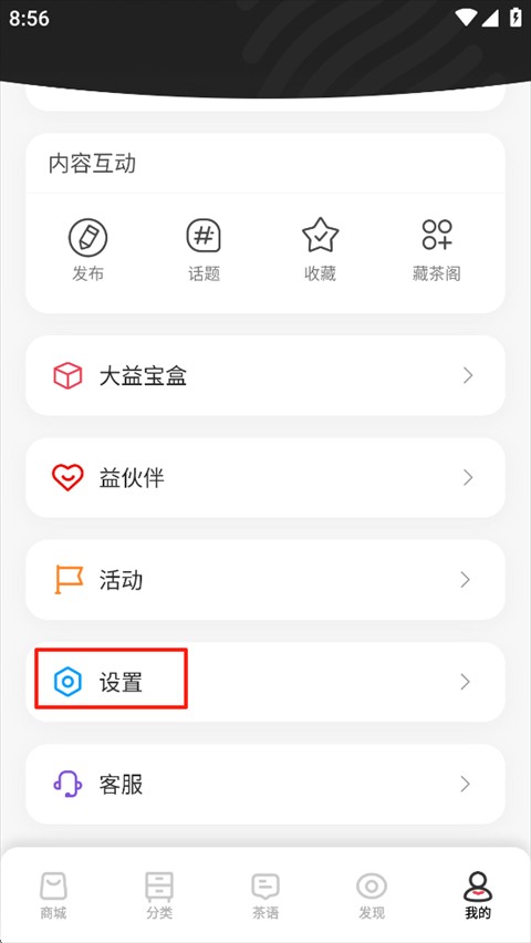 在个人中心页面,滑动查找并点击“设置”选项,进入设置界面。