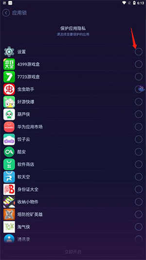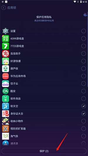 7、点击需要保护的应用后点击保护;