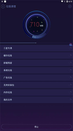 5、提供三星专清、缓存垃圾、卸载残留、系统垃圾、广告垃圾、无用安装包、内存垃圾、我的文件等多种清理方式,一键即可清除;
