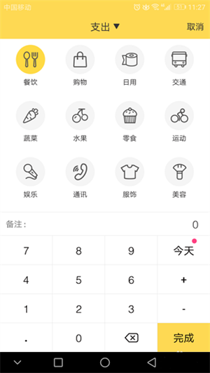 6、接着下方会弹出输入框,在此框内能够输入金额。在金额左侧设有备注栏,你可以在此注明这笔钱的用途,让记录更加详细。完成上述操作后,点击“完成”按钮,即可完成记账。