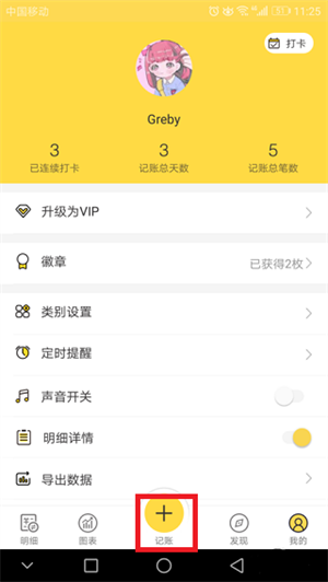 4、点击中间【+】记账按钮,就可以开始你的记账了